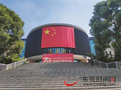走在东莞理工学院城市学院校园里,映入眼帘的是一面面鲜艳的五星红旗。最让人瞩目的,是图书馆主楼前的巨幅国旗,面积将近140平方米,十分显眼,路过的学生纷纷驻足与国旗合照。