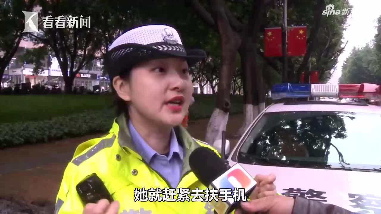 渝中区交巡警大坪大队邹林伶说:“在行驶过程中,她看到支架上的手机要掉了,她就赶紧去扶手机,只有单手握捏方向盘,没有注意到前方护栏,一松手撞到左边去了。”