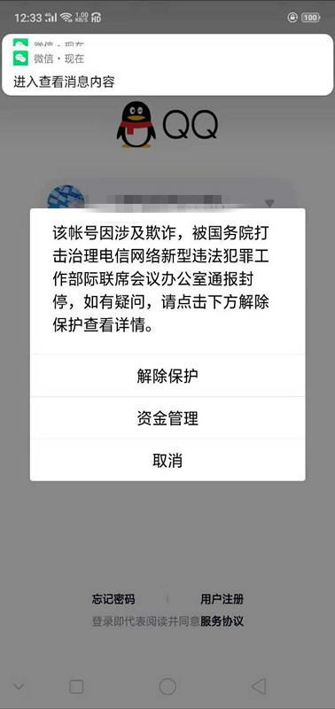 来自重庆的一名女士通过微博联系了《都市时报》,她表示自己是在10月14日中午11点左右被封的QQ号,被封号后,微信发出提示称其QQ出现异常,然后就无法再登录了,登录时显示欺诈封停,提示中附有普洱警方的联系方式。与此同时,该女士还收到了两条同样的短信提示,内容为“[腾讯科技]该账号因涉及欺诈,被国务院打击治理电信网络新型违法犯罪工作部际联席会议办公室通报封停,您可点击以下链接查看详情:http://url.cn/56jOnaN”。