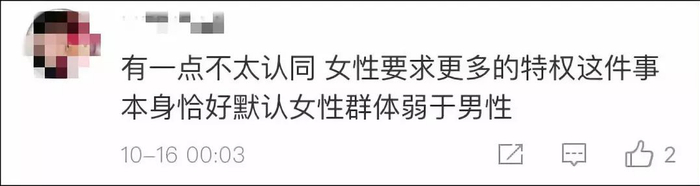 而如果把情景放到家庭中,她也认为“男主外女主内”的传统观念在对女性造成极大压力。“这是基于女的不出去工作的说法。自从女性出来工作以后,其实已经和男性在共同承担社会责任了,但家庭责任仍旧甩给女性,这个平衡还没有调整过来。”