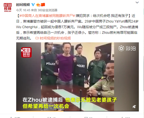 原标题:中国商人在柬埔寨被同胞腰斩弃尸 嫌犯哭求:给次机会吧 我还有孩子