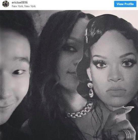 还能看到他和许多名人的合影,看得出兴趣广泛,和美国女星蕾哈娜: