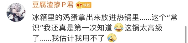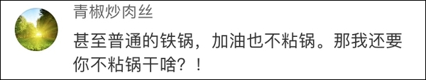 该客服补充道:“一般做饭的人都知道,这样的情况是,当你把锅烧得特别热,你把冰的鸡蛋一敲就会导致粘锅。正常的不粘锅,只要表面有涂层,那都是不粘的,甚至连普通的铁锅,加点油去煎鸡蛋,它也不会粘啊,这个是操作上有问题。”