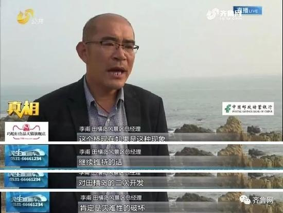 田横岛风景区总经理李甫表示,“现在二次开发已经启动,今年9月30号,这个桥如果是这种现象继续维持的话,对田横岛的二次开发是灾难性的破坏。因为它只能上午通行,(下午)材料进出,人员进出都是不能通行。”