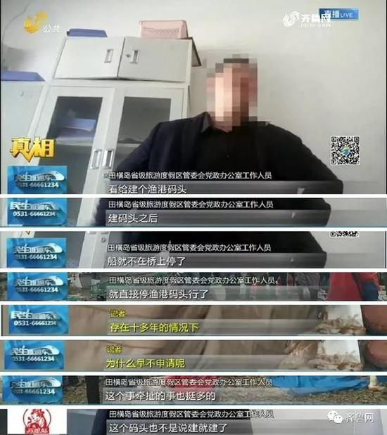 最后,记者找到了田横岛省级旅游度假区管委会党政办公室。工作人员表示,“跟上边打报告看给建个渔港码头。建码头之后,船就不在桥上停了,直接停渔港码头行了。”