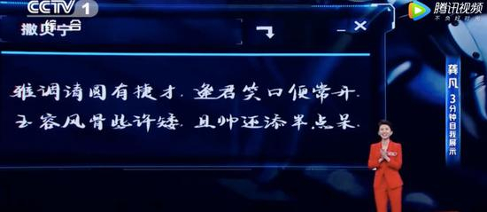 有选手拿他打趣,说自己写的小程序可以作诗,当场就要让它夸奖小撒。输入“撒贝宁”三个字,大屏幕上马上就出来了一首诗↓↓