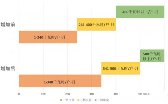 那么,这家人申请“一户多人口”阶梯用电后,每年比之前可省3197-2897=300元电费。当然,从上面的测算即可看出,如果是用电量更大的家庭,每年一档可以增加1200度电,最多可以比之前节省360元电费。