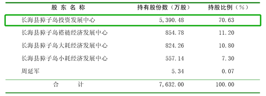 2001年4月,公司进行了股份制改革。股份公司成立后,长海县獐子岛投资发展中心持有的原有限公司的股份,对应地转变为现股份公司的股份,比例不变、依旧是70.63%。