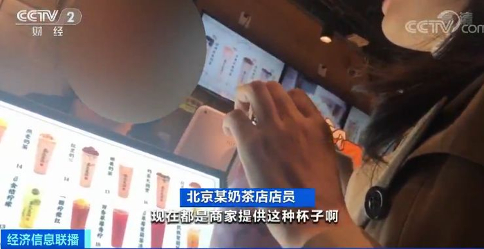 北京某奶茶店店员:现在都是商家在提供这种杯子。