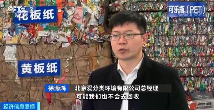 北京爱分类环境有限公司总经理 徐源鸿:算上人力、物流、成本,基本上还有轻微亏损,假如我们不做垃圾分类,可能我们也不会回收这种低值的可回收物。