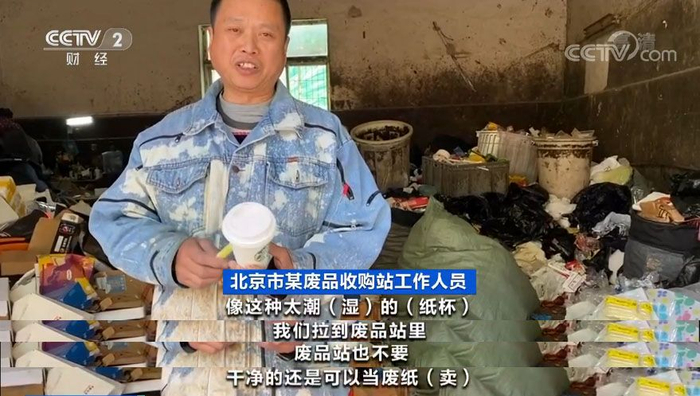 记者去了北京几处废品收购站,发现回收人员对不同纸杯子的回收态度也不同:湿纸杯,不回收;脏纸杯,不回收;干净的干纸杯,有回收需求。