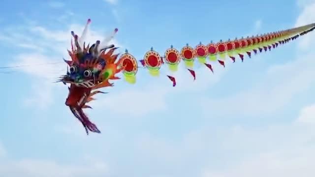 原标题:260米长世界最大巨龙风筝放飞后失控 挣断绳子飞走多人被带到半空