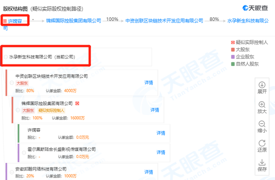 天眼查数据显示,该产品背后的公司水孕新生公司于2017年2月28日成立,其大股东为中资创联公司。