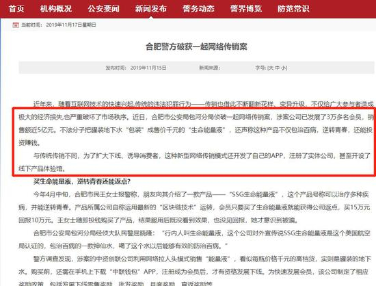 合肥市公安局近日破获一起网络传销案,直接上了微博热搜。