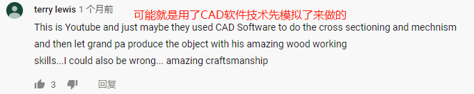 “我说得不一定对。虽然很了不起,但也可能就是博主先用了CAD软件技术模拟,再结合老爷爷的好手工做的吧……”