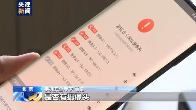 手机安全专家 葛健:还有一种检测方法,就是专门的检测仪器,可以拿着直接在房间里搜索,也能发现偷拍摄像头。
