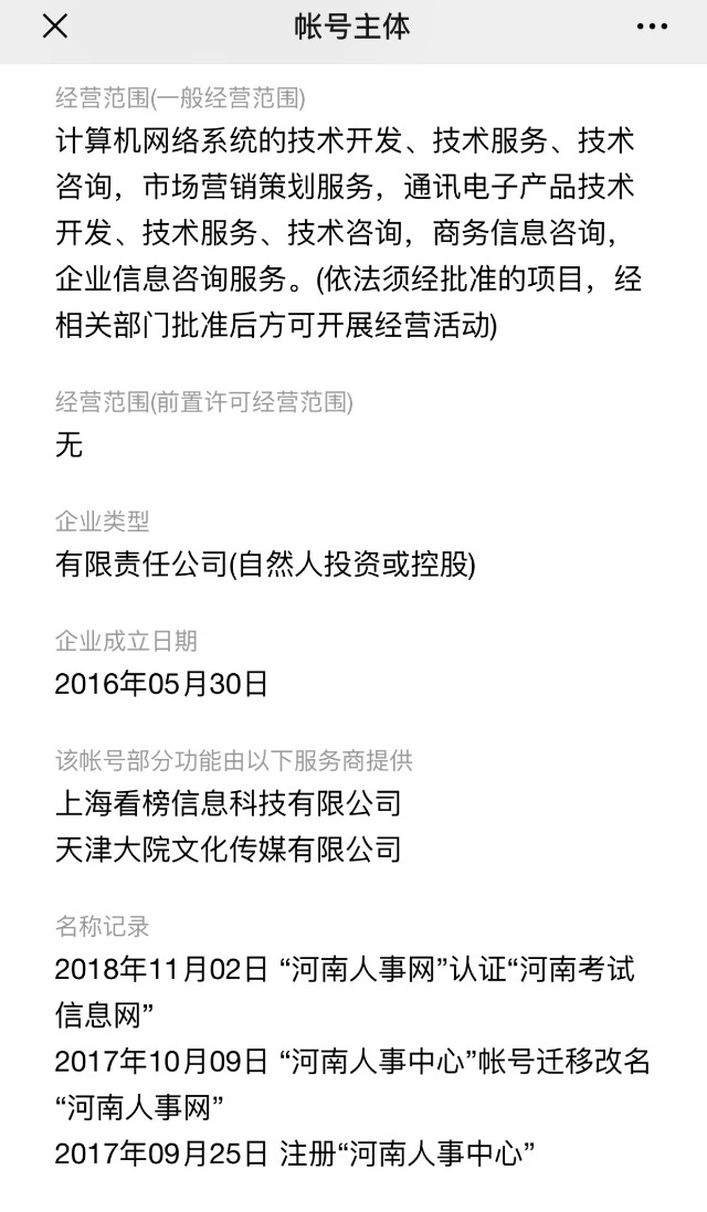 从“河南人事中心”到“河南考试信息网”,这家公司的账号名称一直很“官方