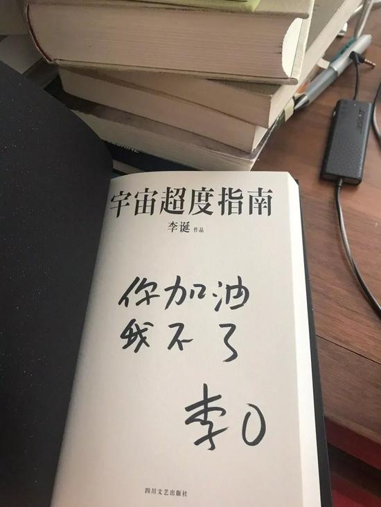 李诞曾经和蒋方舟约定一起在严肃文学领域发光发热,后来却送了一本自己的新书给蒋方舟,上面写着:“你加油,我不了。”(图自蒋方舟微博)