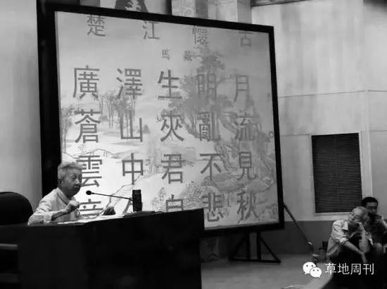 从2009年讲《庄子》算起,流沙河已在这个讲台上讲了5年。每月一次,少有间断。有报道说,今年1月,老头儿不小心闪了腰。但2月初,他依然到场讲了王维的《酬张少府》《终南别业》和孟浩然的《临洞庭上张丞相 》《与诸子登岘山》。