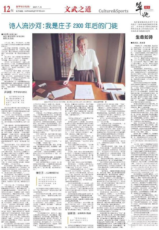 聊起《庄子》,流沙河兴趣大增。他对《新华每日电讯》记者说:“我是庄子2300年后的门徒。”