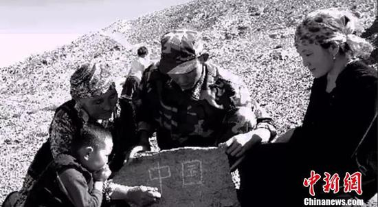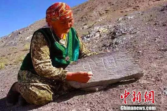 布茹玛汗•毛勒朵不识字,便向亲朋好友讨教,终于学会了“中国”二字的写法。至今,她已刻带有“中国”二字的大大小小的石头逾十多万块,从此串成了长长的巡边路线。