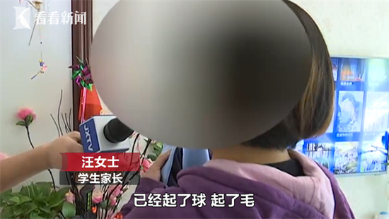 学生家长汪女士拿出了一套校服说:“这一套运动服是198一套,但是我们孩子穿了的话,就是一个多月,这还是用手洗的,已经起了球,起了毛。”