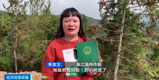 浙江温州 朱女士:他没有数树,他就把我妈妈的树卖了。卖了也没有赔偿给我妈妈,他没有什么说法。
