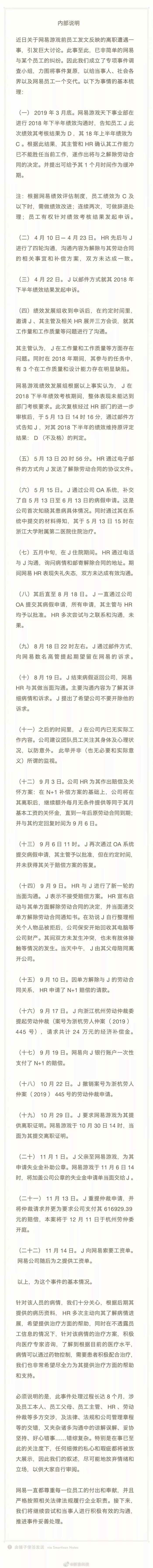 最后,网易在声明中表示,将推进事件妥善处理,为前同事提供一切可行的援助。