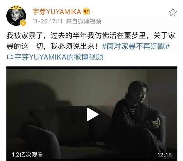 11月25日,国际反家庭暴力日当天,美妆博主宇芽在微博中称,自己遭到前男友“沱沱的风魔教”(下文简称“沱沱”)家暴,并晒出了视频。