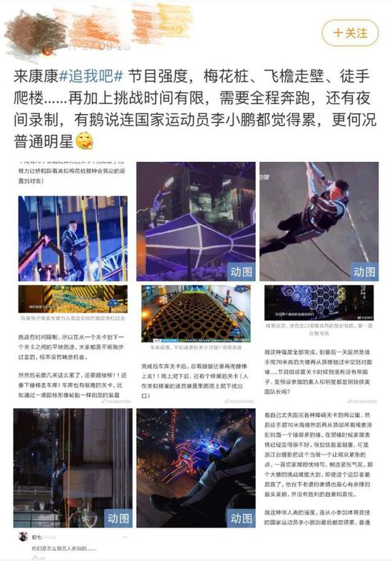 据悉,《追我吧》是浙江卫视推出的夜晚城市实境追跑真人秀,由浙江卫视战略发展中心制作,节目已经播出了3期。陈伟霆、范丞丞、黄景瑜等是节目常驻嘉宾,高以翔作为嘉宾参加这一期节目的录制。根据此前介绍,为了节目效果,《追我吧》都是晚上录制,而且对体能要求颇高。过往几期中,邹市明、李小鹏等体育明星都表示吃不消。