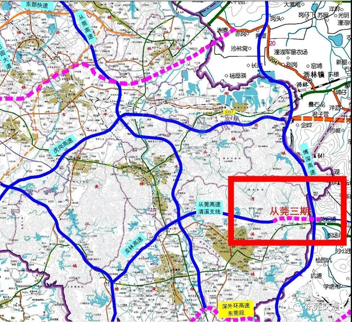 从莞高速是广东高速公路网的重要组成部分,项目位于莞深高速和博深高速之间,是东莞东部沿线各镇的沟通要道,也是北进惠州与南下深圳的快速通道。其中,主线是东莞市“五纵四横六连”高速公路网的“第四纵”,清溪支线接原龙林高速组成东莞市“五纵四横六连”高速公路网的“第三横”。主线途径石排、企石、横沥、常平、樟木头、清溪、塘厦、凤岗等8个镇街,长42.2公里,双向六车道。清溪支线起于塘厦镇林村,接原龙林高速,向东终于惠州市新圩镇约场村,接博深高速,长约15.5公里,双向四车道;是形成和完善东莞主干线网络,构筑博深高速与从莞高速两大纵向高速通道之间联系的重要通道。