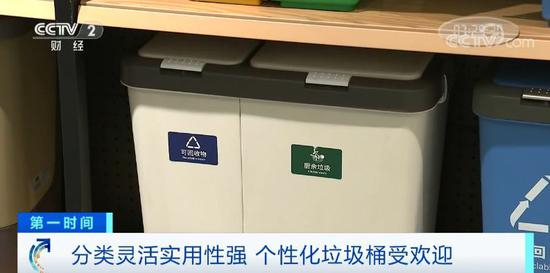 央视财经记者 汤天奇:生活中常产生的垃圾中厨余垃圾占了重要的部分,所以企业生产的家庭用的分类垃圾桶多是以这种两分类的类别为主。而像废旧灯管、电池等这样不常产生的垃圾会以这种收集袋的方式出现在楼道的公共区域。