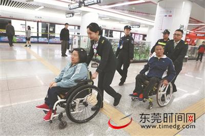 市轨道公司工作人员介绍,已经向社会特别是残障人士朋友公布了地铁2号线全线15个车站的爱心热线,如残障人士或其他行动不便的乘客坐地铁时有需要,就可以提前拨打车站的爱心服务热线,预约陪同服务。东莞地铁2号线的15个车站都安排了工作人员,提供陪同进站、购票、进闸、乘车、出闸等服务,协助有需要的乘客顺利进站乘车并抵达目的地车站。