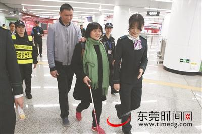 12月3日上午,家住道滘的盲人夫妻叶福寿和张淑芬一齐从家里出发,搭乘公交、地铁来到了位于南城的鸿福路地铁站,并率先在这里体验了地铁员工提供的贴心引导和陪同服务。