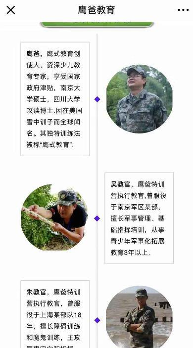 在夏令营招生简章中,“因在美国雪中训子而全球闻名”的鹰爸训练方法成为该营的特色,何宜德“家教奇迹”被推广到更多孩子身上,通过鹰爸式的训练,孩子们能够从品格、态度、能力等多方面得到提升。