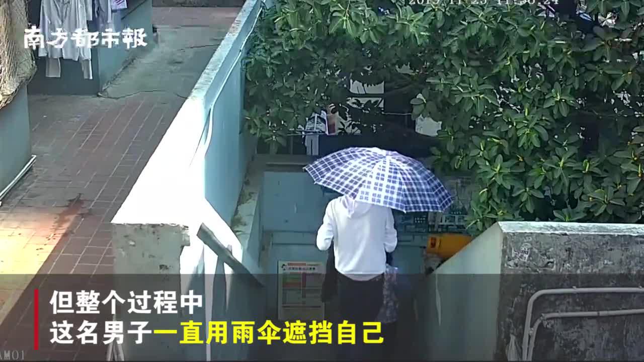 视频-晴天打伞有猫腻?深圳一男子靠伞遮脸躲避监控 偷盗笔记本电脑