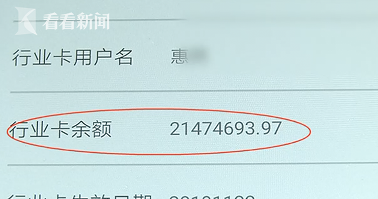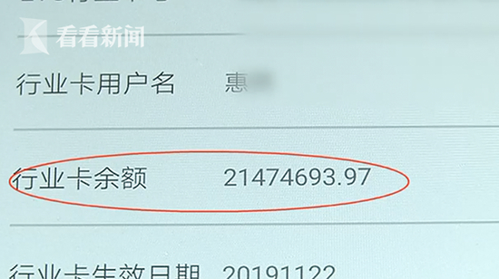 “最近跑高速,消费了有一百多元接近两百了,我感觉要充值了,结果发现充不进去,但还是可以用。于是我就想查一下余额,这(ETC通衢卡)卡里大概有2147万元。”这笔意外之财让惠先生坐立不安,他还发现,手机银行APP上除了能够查询这张ETC通衢卡的余额之外,其他功能都不能使用。而且,每次进入高速ETC通道缴费时,相关信息也显示异常。“这次卡内金额变化后,我每次走ETC通道,收费杆就会抬起来,显示屏没有任何显示信息比如通行消费了多少钱、车辆号牌信息等。”