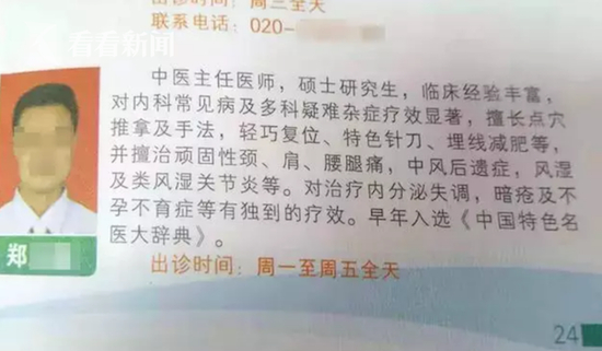 今年九月份中旬,邬女士前往广州某医院找郑某看病,她说他们是在交友群结识的,当时郑某自称是主任医师,擅长中医治疗,邬女士可以直接去找他看病。