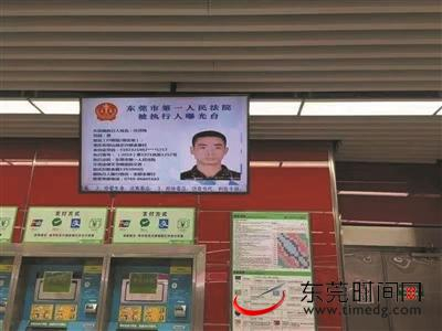 东莞法院首次在地铁上曝光的八名“老赖”信息,从6时10分开始,就在电子屏幕上滚动播出,直至23时9分结束,每天被曝光16次,如此曝光频率,将持续一个月。