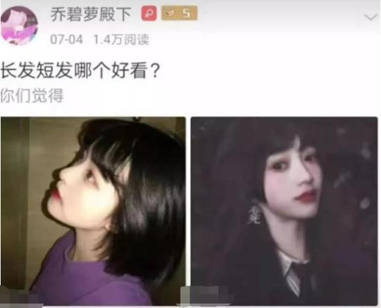 北京青年报记者注意到,此前“乔碧萝殿下”曾在其个人社交账号发布两张女性肖像图片,并配文“长发短发哪个好看,你们觉得”。而在“萝莉变大妈”事件后,这两张照片被网友指出疑似盗用了一位美妆博主的肖像图片。