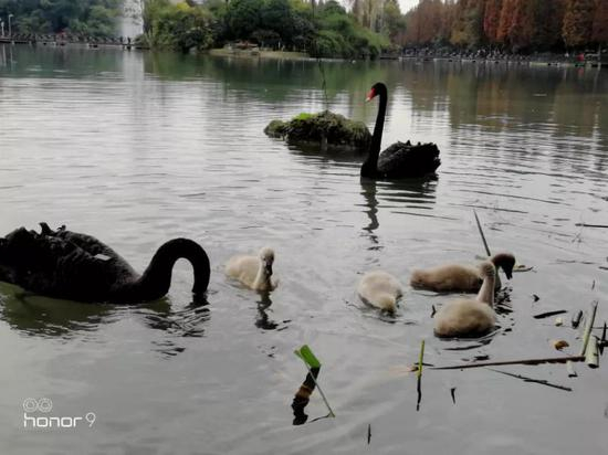 成都电子科大新降生4只天鹅 校园天鹅总数达11只