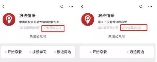 而在大家集中声讨PUA的过程中,一个名叫“浪迹情感”的公众号突然刷屏。该公众号一直号称自己是“中国最权威的男性情感教育平台”,从恋爱技巧到视频学习,每一篇文章都能精准get到PUA爱好者们想要学习什么。