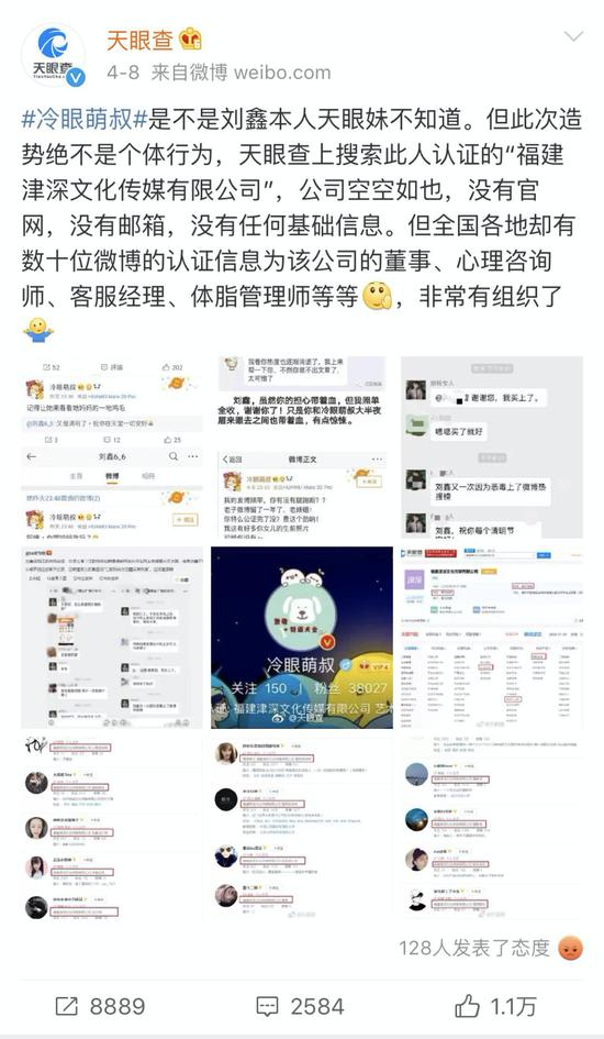 刘鑫对江歌妈妈的攻击嘲讽,早已不是一个人在操作。有媒体发现,刘鑫小号冷眼萌叔认证的“福建津深文化”,只是一个空壳,但是全国各地,却有十几个微博账号,认证成这个公司的员工。