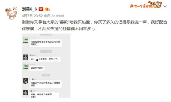 但刘鑫却隐去了其他信息,只留下了:我买上了。