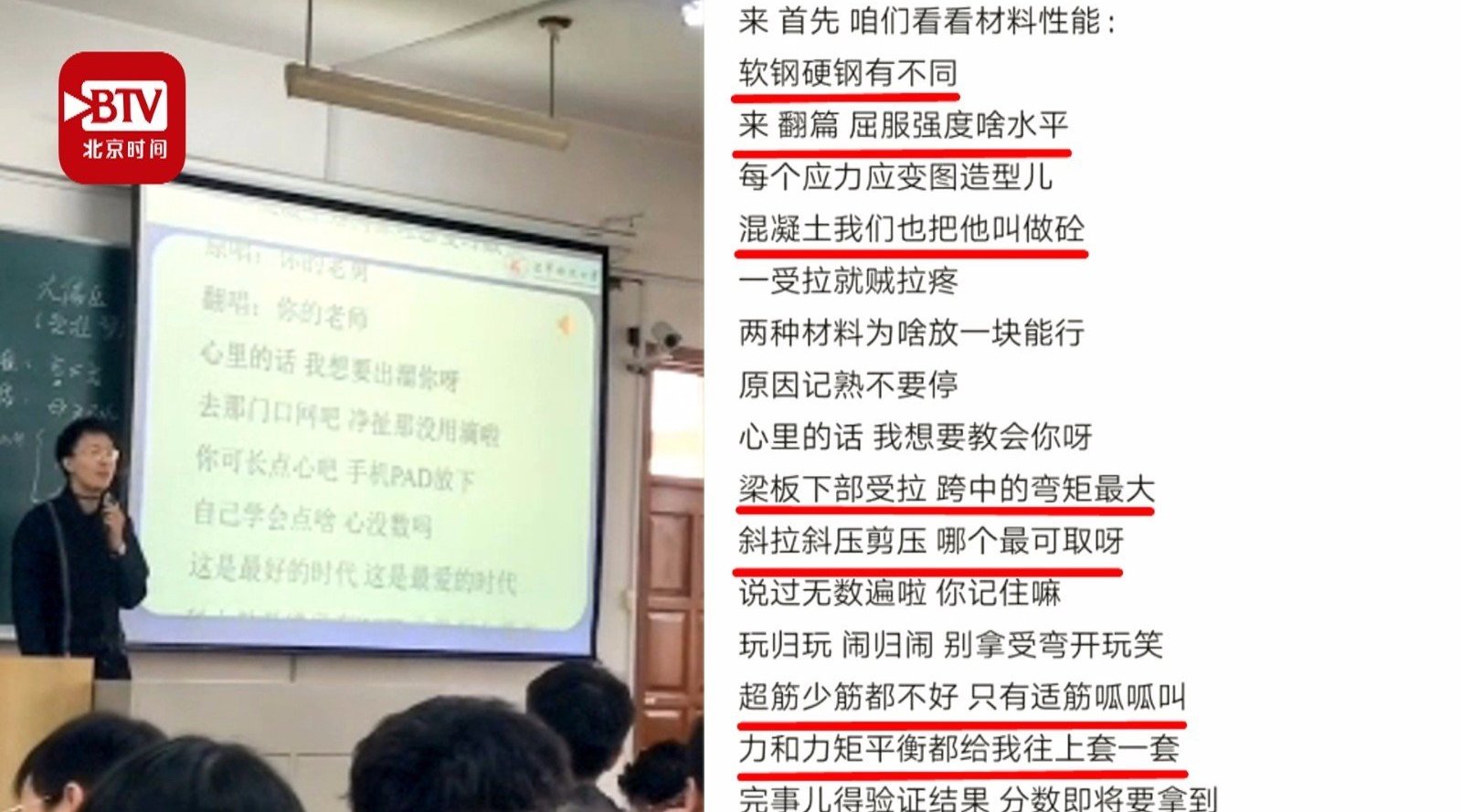 李老师说之前就有改编过其他的歌,《中国人》、《沙漠骆驼》都成为了他的章节总结。最近临近期末知识点难背,又是工科课程学起来比较枯燥,这样改编方便学生们记忆。