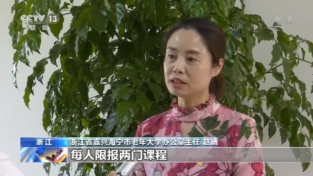 浙江省嘉兴海宁市老年大学办公室主任 赵晴:我们要求所有的老年学员每人限报两门课,我们也把学制限定在两到三年,对热门课程我们进行分层教育,我们设置基础班和提高班,如果学员有更大需求的,我们对部分课程开展研修班。