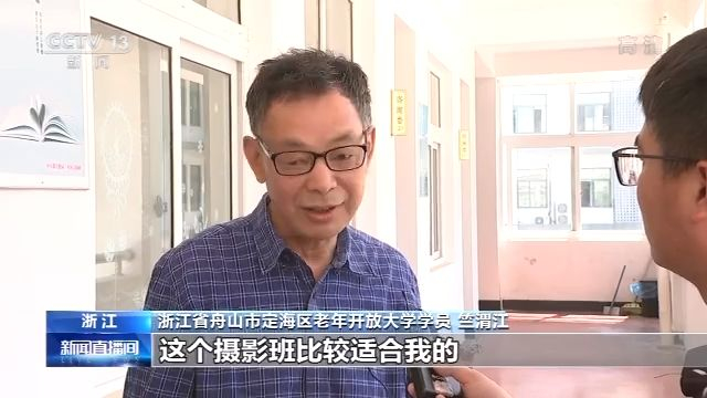 浙江省舟山市定海区老年开放大学学员 竺渭江:学校里把这个通知发到社区里面,社区里面看到了,这个摄影班挺适合我的,就报名。