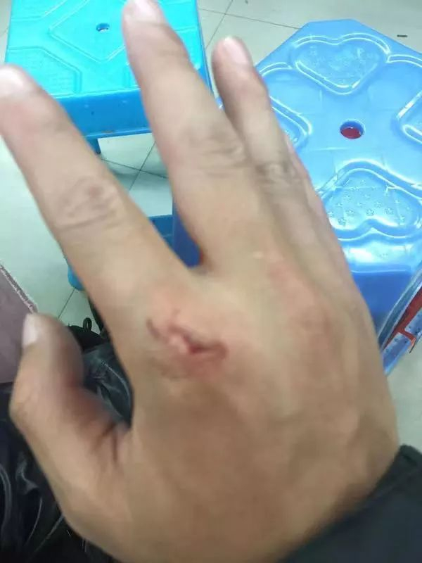 这一次,吴申元缓缓走到女子身旁,假意教她取消订单。当女子的注意力被吸引到手机屏幕上时,吴申元一把抓住她握着剪刀的右手,往远处一扯,随后用力将女子的手别到背后,成功夺下剪刀。整个过程只有短短几秒。过程中,吴申元的右手手背食指关节处也被剪刀划出一条2厘米的口子。