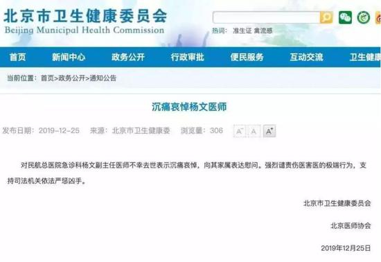 24日,北京民航总医院杨文医生在诊疗过程中遭患者家属割颈身亡,事件引发舆论极大关注。