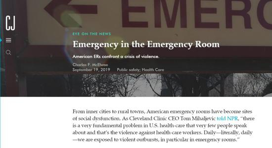 在医疗水平相对更加发达的美国,暴力伤医事件同样存在,美国急诊室面临暴力危机。